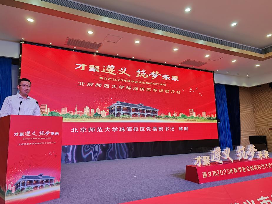 10月31日,贵州省遵义市“才聚遵义 筑梦未来”高校引才活动在北京师范大学珠海校区举行。遵义市委常委、市委组织部部长、市委党校校长徐永琳,珠海校区党委副书记韩舰,以及双方相关部门负责人共同出席了推介会启动仪式及现场招聘活动。活动前,北京师范大学副校长、珠海校区管委会主任孙红培与遵义市领导亲切会面,双方围绕校地合作、人才联合培养及毕业生就业对接等内容进行了深入交流。