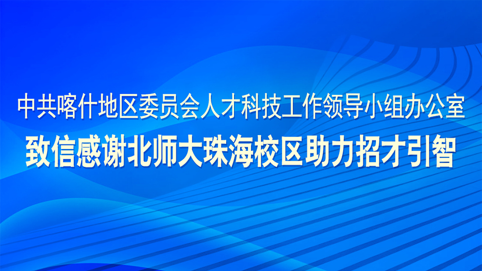 近日,中共喀什地区委员会人才科技工作领导小组办公室向北京师范大学珠海校区发来感谢信,对校区在“才聚喀什·智惠丝路”招才引智专项工作中提供的支持与取得的成效表示诚挚感谢,为校地深化合作、共促毕业生高质量就业与区域协同发展奠定了坚实基础。