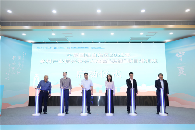 10月20日上午,2025年宁夏乡村产业振兴带头人培育“头雁”项目开班仪式在北京师范大学珠海校区励教楼B102会议室举行。该项目既是农业农村系统落实新时代人才强国战略的重要举措,也是推进乡村人才振兴、助力农业产业提质增效与农民致富增收的关键抓手,旨在通过系统化、定制化培训,打造一支“懂产业、善经营、能带动”的宁夏乡村振兴带头人队伍,推动形成“头雁领航、群雁齐飞”的乡村产业发展新格局。