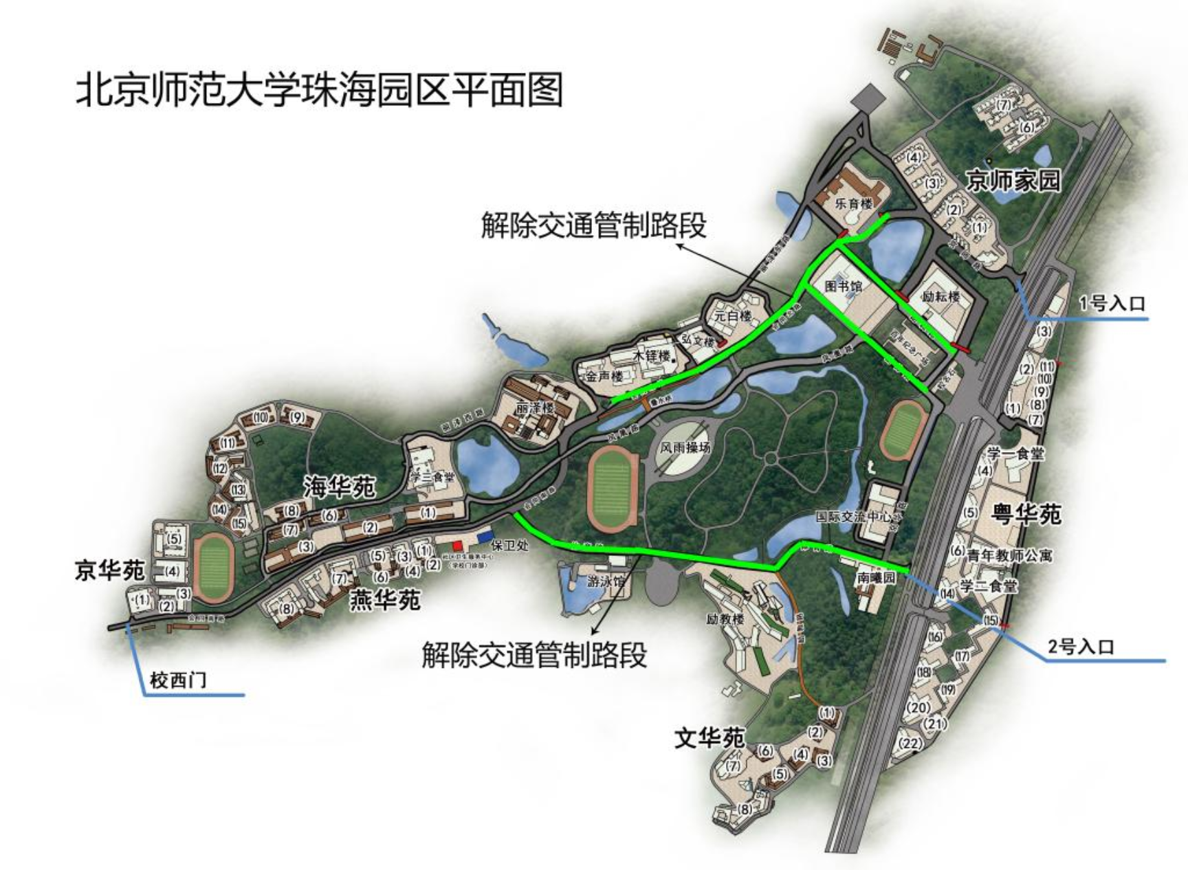 为便于寒假期间教职员车辆通行,兹定于2026年1月26日24时至2月28日24时期间,解除校内会同北路、励耘路、励德路、体育路的交通管制。3月1日0时起恢复交通管制。请提醒本单位教职员在校园内驾驶车辆时,限速在30km/h以下,且须注意避让行人,确保行车安全。