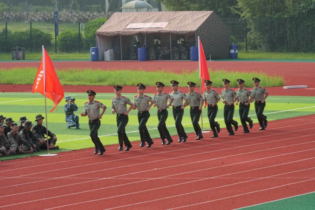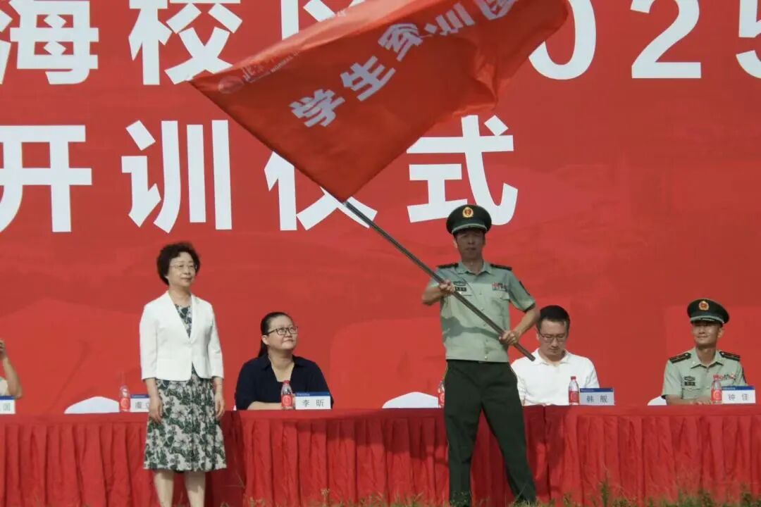 虞立红为学生军训团授旗,学生军训团团长伍清溪接旗。伍清溪强调军训是践行强国兴国目标、落实立德树人根本任务的重要载体,是每个大学生的必修课。他希望参训学生无论未来身在何处、从事何职,都要谨记:国防观念、纪律意识、身体素质是支撑国家发展的基础素质,并在未来的人生中带着军训赋予的坚韧、果敢、团结、担当,奔向祖国需要的地方,在国家建设与民族复兴的新征程上,一步步实现理想目标,彰显人生价值。