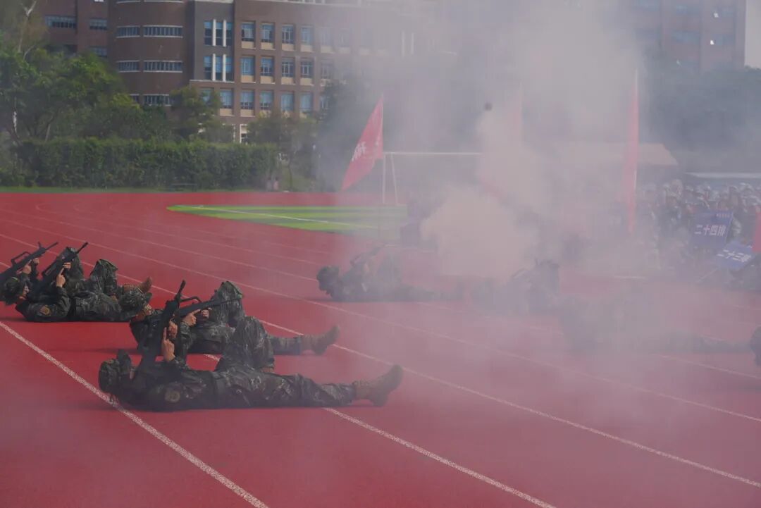 武警珠海支队进行了多项军事技能展示,赢得了同学们的阵阵掌声与喝彩。