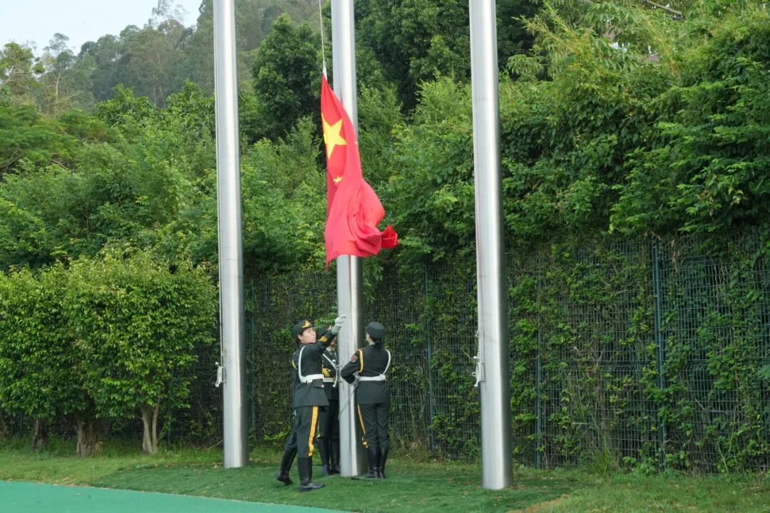 伴随着国歌的奏唱,五星红旗缓缓升起,开训仪式拉开帷幕。张治国郑重宣读《北京师范大学珠海校区2025年学生军训团编制》,此次学生军训由4个营、11个连、31个排组成,共有2017名本科生参训。