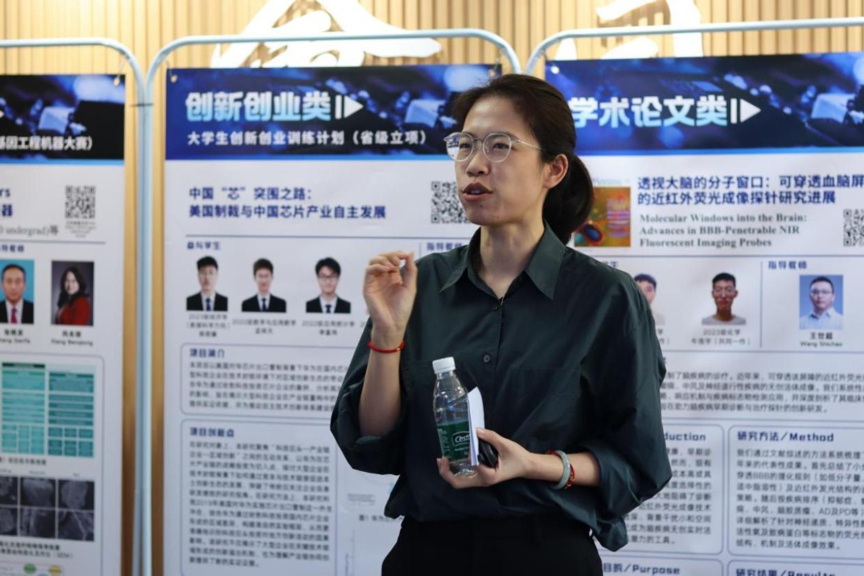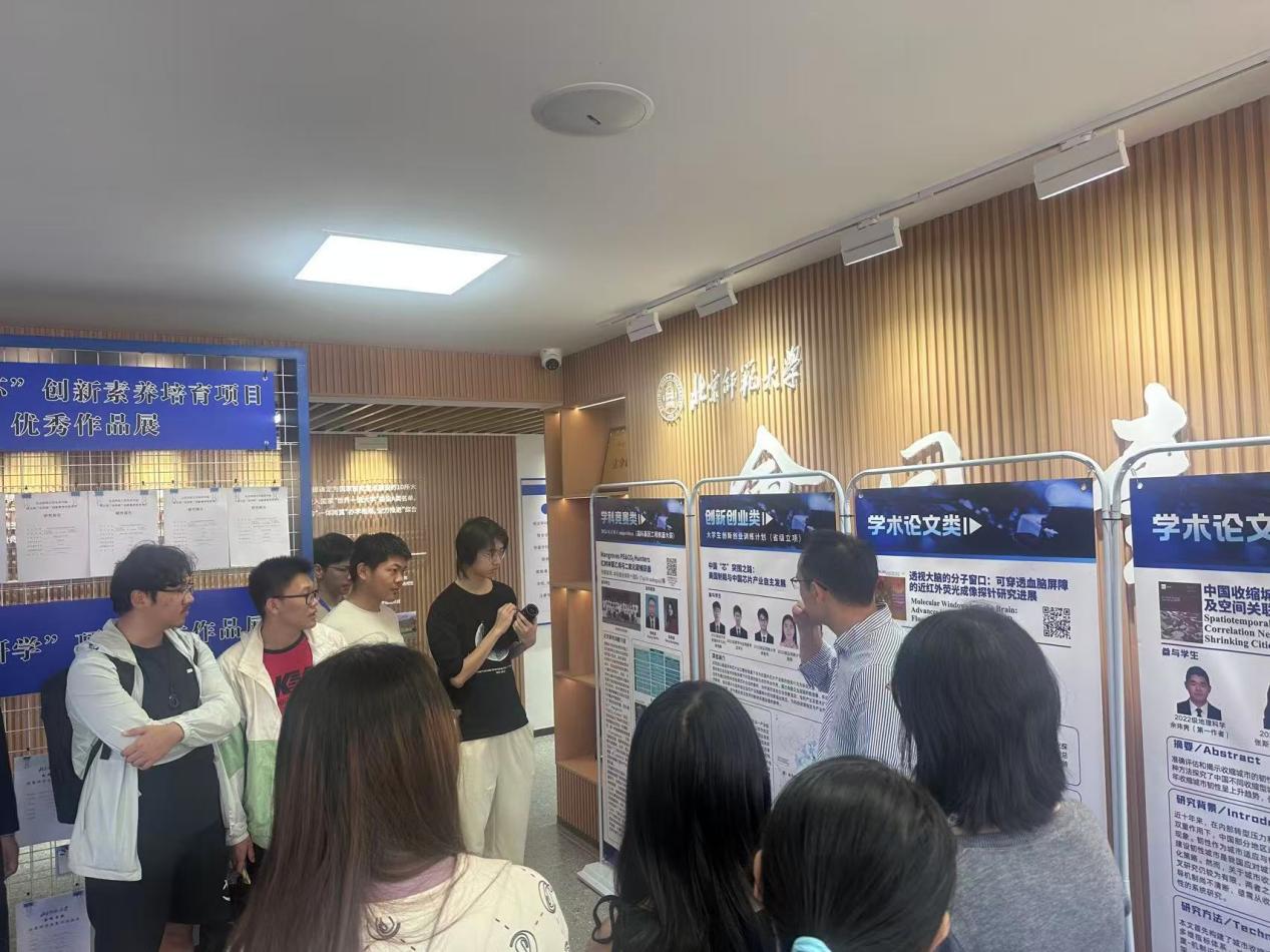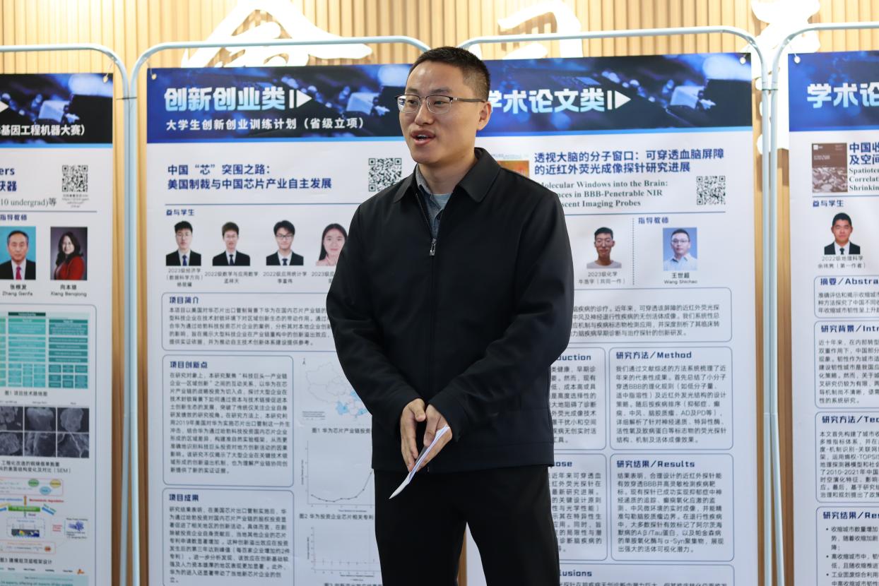 启动仪式结束后,与会师生前往书院一楼大厅,参观“学科交叉与融合创新月”学生创新成果展暨校区学术文化节预展。作为校区学术文化节的预热环节,本次预展集中展出了书院学生在学术论文、学科竞赛、创新创业等方面的优秀成果,与会师生针对参展作品进行深入交流,现场气氛热烈,为后续系列活动营造了浓厚的创新氛围。