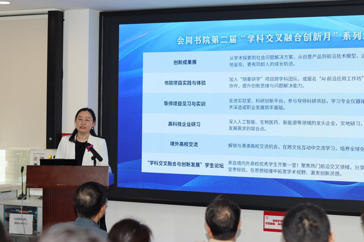 虞立红代表书院对与会师生的到来表示感谢。她鼓励同学们把握好契机,积极参与到学科交叉融合创新月的各项活动中去,充分利用好这一平台,锐意进取,勇于创新,不断追求卓越,为自己的未来发展奠定坚实基础。
