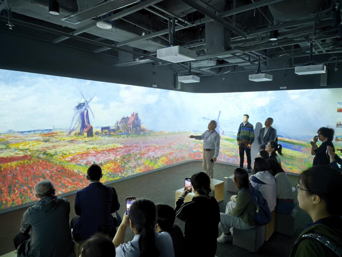 香港科技大学(广州)图书馆作为融合学习、科研与文化交流的“第三空间”,其科技赋能与人文关怀并重的建设理念获得了珠海校区参访馆员的高度认可。在港科大(广州)图书馆馆长张甲、主任林淑珍的全程引导下,参访馆员依次参观了1至5楼的书架阅览区、学习共享区、数字人文工作坊、沉浸式空间及多功能展厅等特色功能区,细致了解了馆藏资源布局逻辑、自助借还全流程及跨校区资源共享机制。