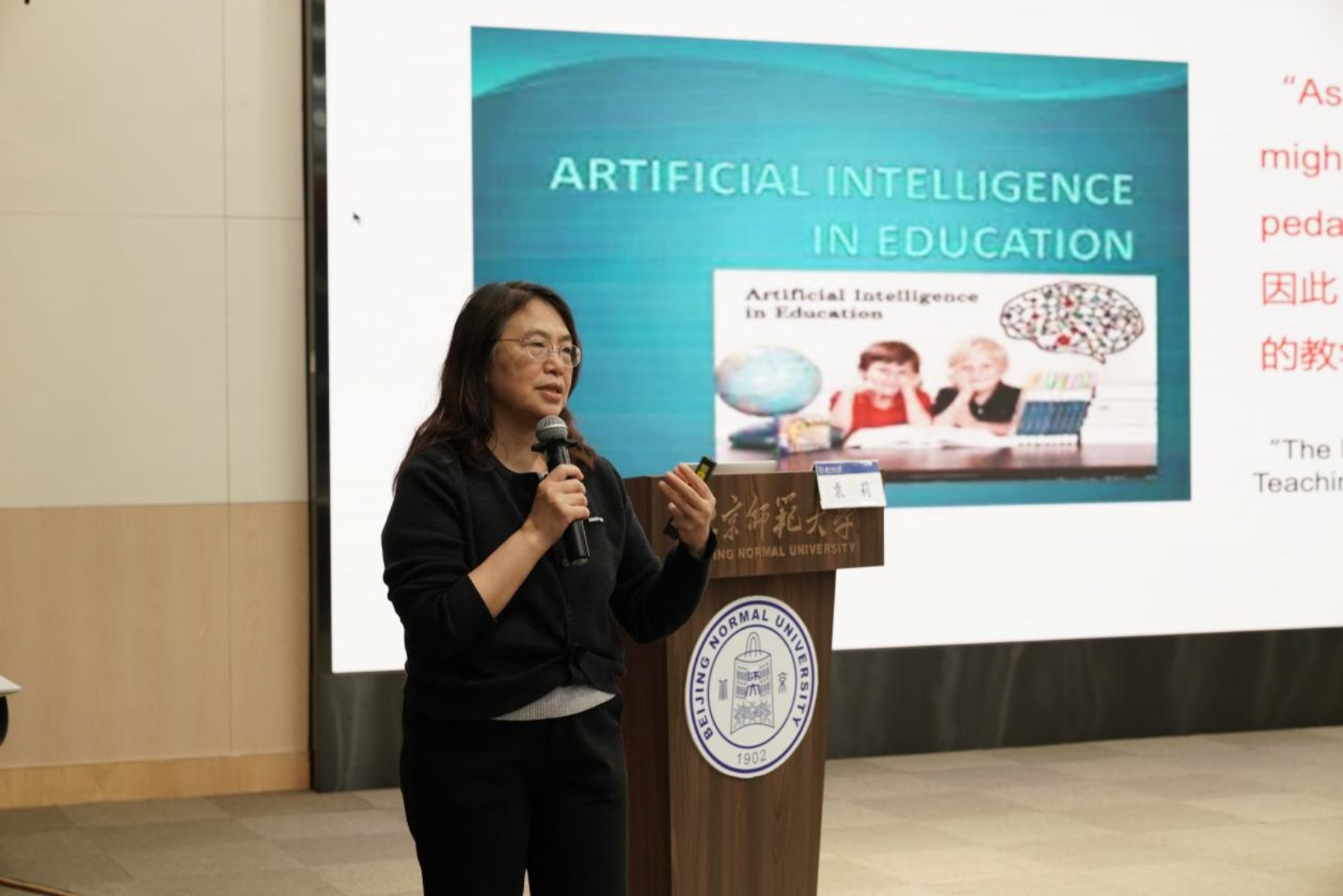 袁莉老师讲授《生成式AI赋能教育的国际视角》 曹一鸣老师讲授《基于AI大数据的教育数字化转型与创新》
