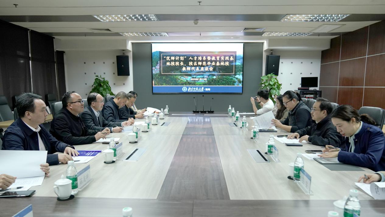 1月14日,北京师范大学珠海校区召开“优师计划”人才培养暨教育实践基地校校长、校区师范毕业基地校教师代表座谈会。珠海校区管委会副主任、教务长李昕出席会议,会议由副教务长兼教务部培养办公室主任孙波主持。来自四川、安徽、贵州、陕西等中西部地区的8所教育实践基地学校负责人,以及6名2025年入职实践基地学校的珠海校区师范毕业生代表参加座谈。