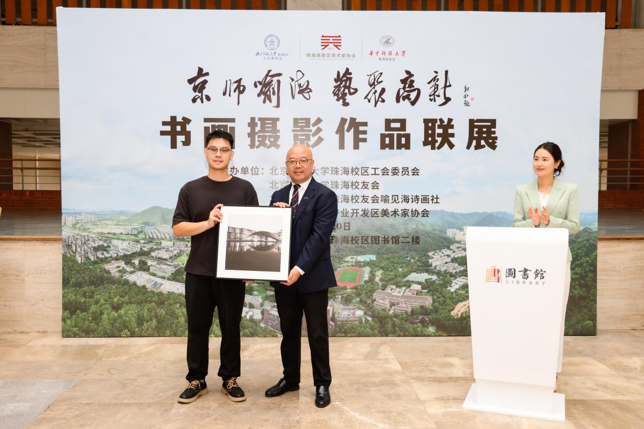 4月25日上午,“京师喻海 艺聚高新”书画摄影作品联展在北京师范大学珠海校区图书馆二楼中庭开幕。展览由北京师范大学珠海校区工会、珠海校友会,华中科技大学珠海校友会喻见海诗画社,珠海高新技术产业开发区美术家协会联合主办,旨在以艺术为媒,促进校际、校企与区域文化交流,丰富湾区文艺生态。