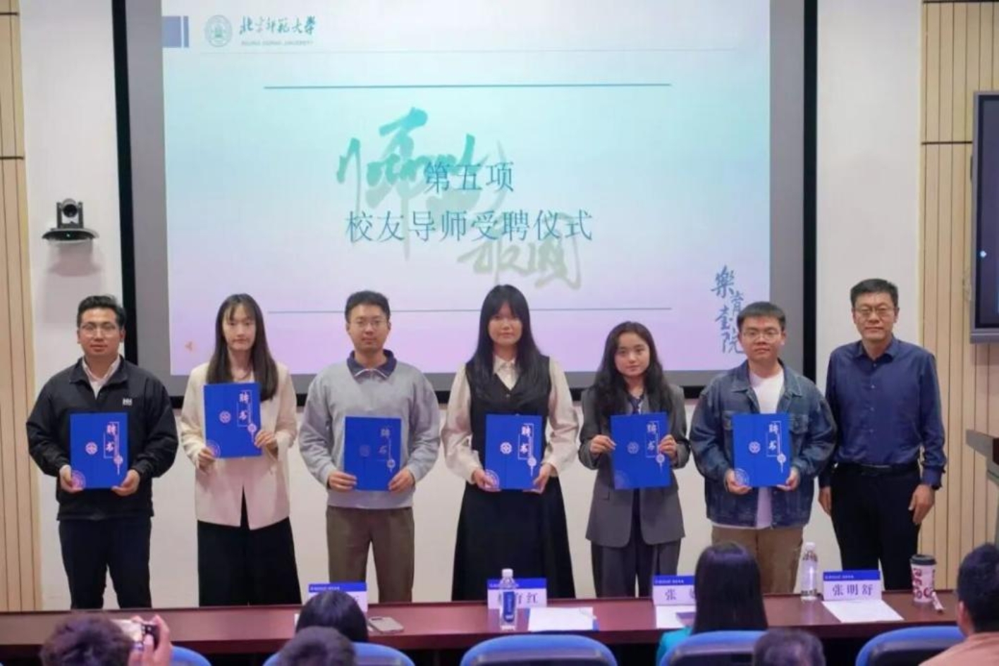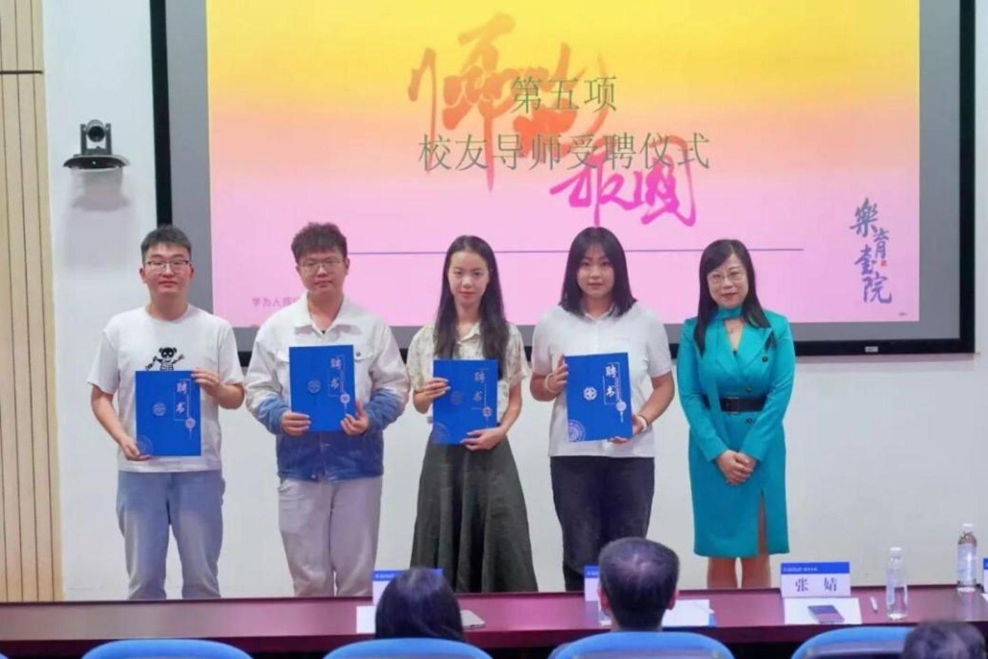 为更好地将来自一线的实践智慧“反哺”在校生的培养环节,并构建校友与在校生互助的长效机制,现场举行了乐育书院校友导师受聘仪式。杜育红、张婧为校友代表颁发聘书。