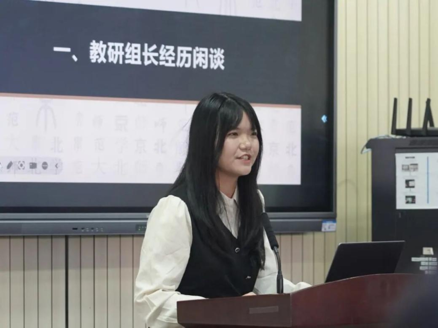 沈德璟从“站上讲台:以勇气破局,以准备铺路;站稳讲台:以专业立足,以共情暖心;站好讲台:以创新为翼,以责任为魂;讲台之后:以反思沉淀,以成长续航”四个方面,对新教师如何站稳讲台进行了分享,展现了新手教师从青涩到成熟的蜕变密码,体现了新一代教育人传承教育温度、书写教育担当的无限潜力。