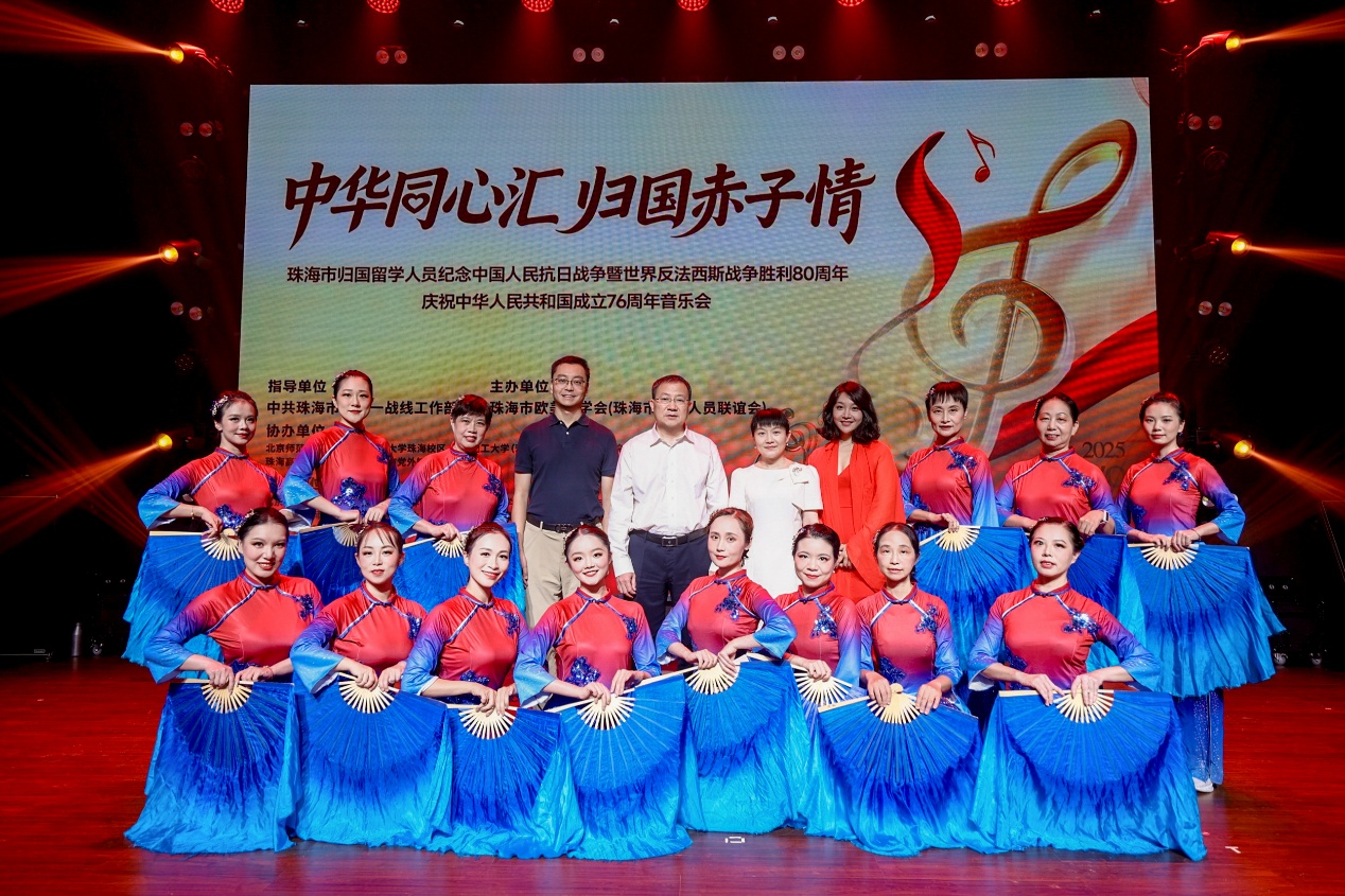 随后,教师们前往唐涤生大剧院,集体观看“中华同心汇·归国赤子情”——珠海市归国留学人员纪念中国人民抗日战争暨世界反法西斯战争胜利80周年及庆祝中华人民共和国成立76周年音乐会。音乐会由中共珠海市委统一战线工作部指导,珠海市欧美同学会(珠海市留学人员联谊会)主办,北京师范大学珠海校区等单位共同协办。珠海市委常委、统战部部长郭才武,市政协副主席张松等领导出席活动。整场演出分为“烽火岁月·山河铭记”“赤子归国·薪火相传”“家国同梦·复兴有我”“致敬荣光·再创辉煌”四大篇章,融合演唱、器乐、诗朗诵、舞蹈等艺术形式,打造了一场凝聚爱国情怀与时代精神的视听盛宴。