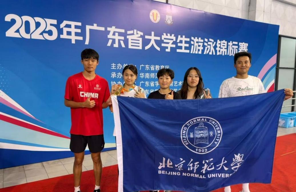 10月10日至13日,2025年广东省大学生游泳锦标赛在华南师范大学(大学城校区)游泳馆举行。本届赛事由广东省教育厅主办,广东省学生体育艺术联合会及其游泳分会协办,比赛吸引了来自全省71所高校的1100余名运动员同场竞技,规模盛大、竞争激烈。北京师范大学珠海校区游泳队由未来教育学院体育系黄超老师带队指导,参赛选手包括陈韵希、曾舒琪、骆薪颖、雷鸣轩四位同学。