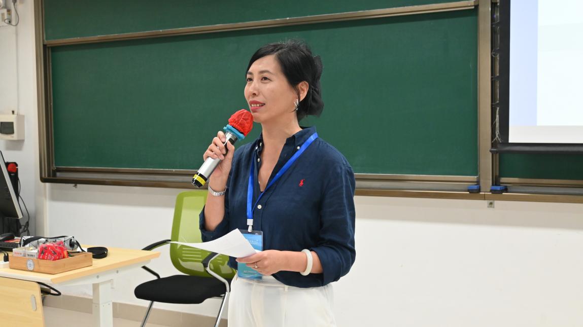 北京师范大学湾区国际商学院陈蕾教授代表主办方致辞。她指出本次赛事不仅为同学们搭建了创新实践的舞台,更通过校企协同评审的模式,推动了学术与产业的深度联动。她强调,三创赛的核心价值,在于以赛促学、以赛促练,引导同学们将专业知识转化为创新动能,在实践中锤炼跨学科协作能力与商业思维。她鼓励同学们以本次赛事为新起点,持续打磨项目、深耕专业领域,在未来的三创赛道中勇攀高峰。同时表示学校将持续整合校企资源,为获奖队伍对接后续发展支持,助力项目在省赛、国赛中再创佳绩。