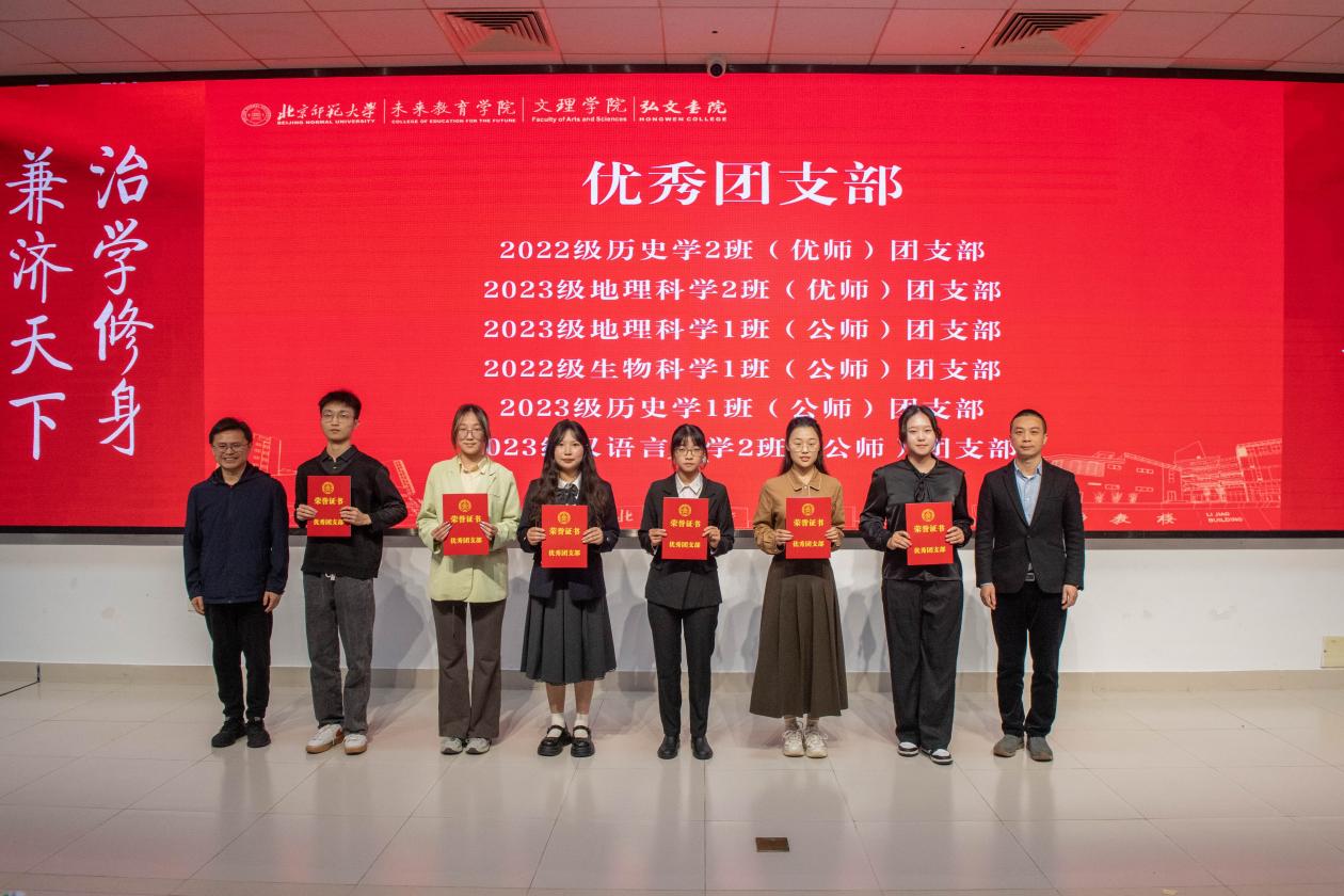 丰收源于耕耘,卓越始于笃行。在2023—2024学年,未来教育学院、文理学院与弘文书院协同联动,致力于为师范生搭建多元化的成长平台,开辟多维发展通道。同学们在持续提升能力素养的过程中,展现出蓬勃向上的精神风貌。共有9个班集体、6个团支部以及1000余人次荣获校级以上表彰奖励。与会嘉宾为获奖代表颁奖,共同见证了同学们的成长与蜕变。