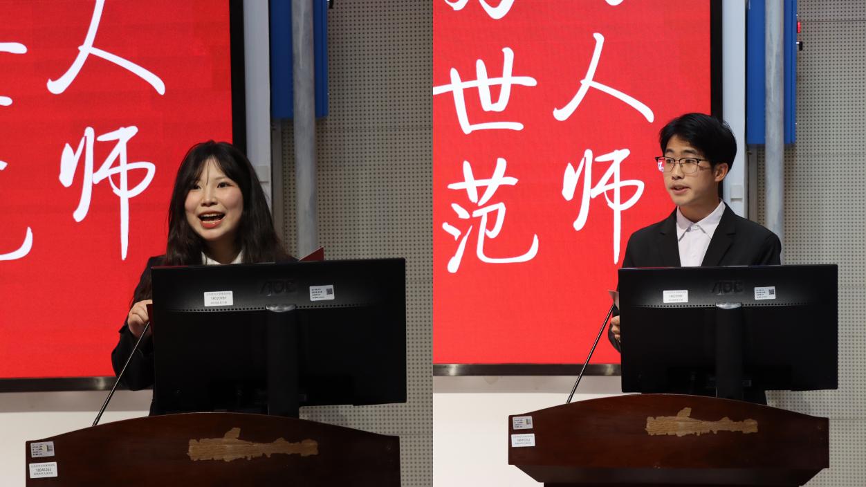 2023级地理科学2班团支部书记谭云秋雪同学,以及国家奖学金和自强之星获得者、2022级化学3班崔定伟同学,分别代表获奖集体和获奖个人发言,分享了他们在成长道路上的收获与感悟。
